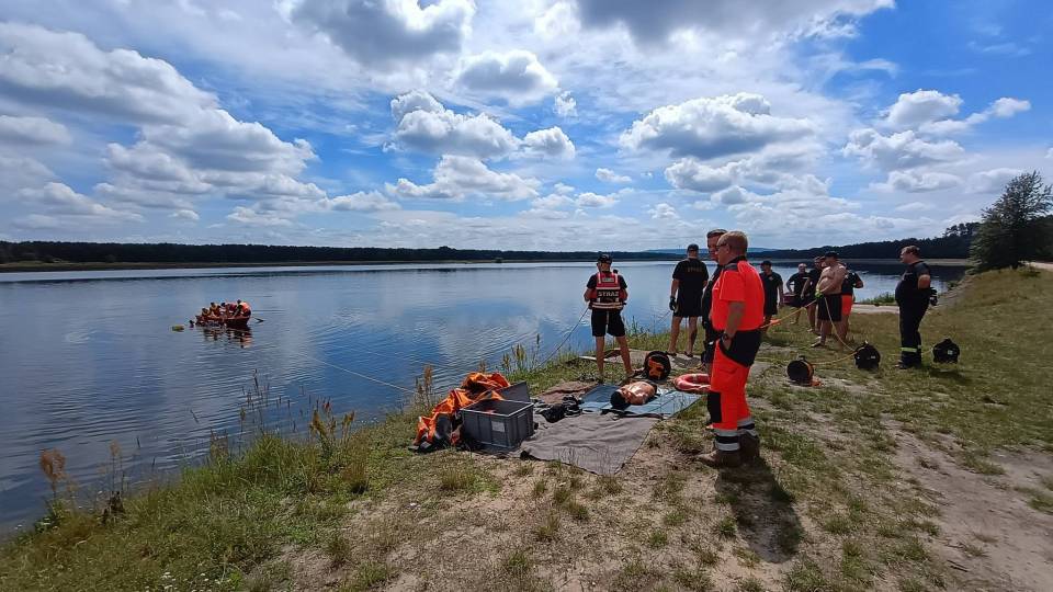 Strażacy ćwiczyli techniki dotarcia do osoby tonącej, ewakuację osób poszkodowanych z wody oraz udzielania kwalifikowanej pierwszej pomocy pod nadzorem koordynatora ratownictwa medycznego lekarza Ignacego Baumberga.