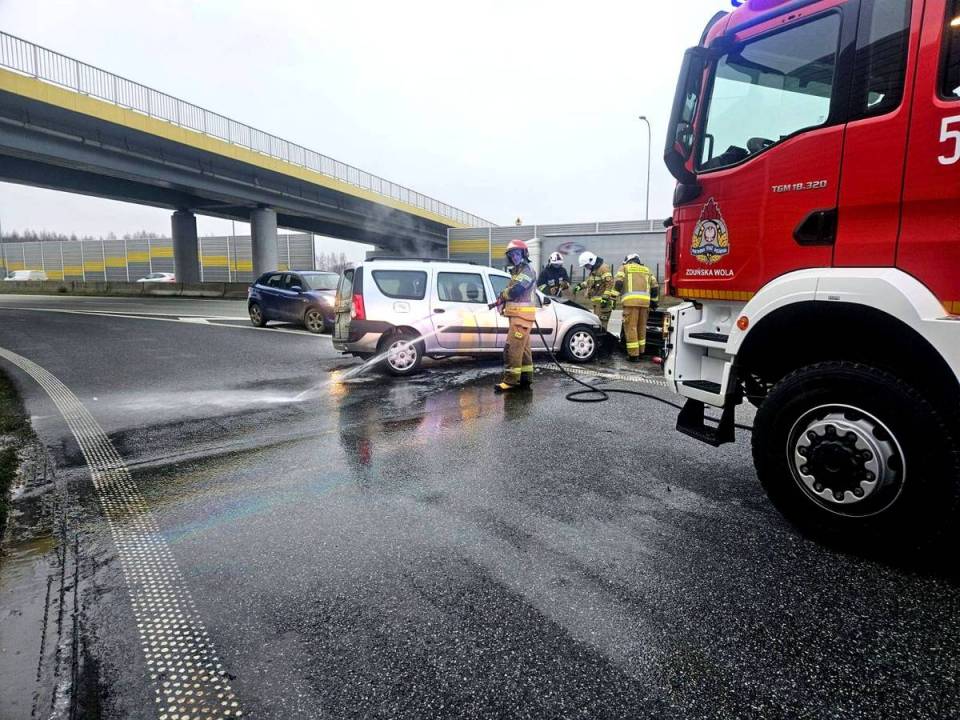 Policjanci zaczęli gasić płonący samochód, ograniczając rozprzestrzenianie się ognia do czasu przyjazdu straży pożarnej, która następnie dogasiła pojazd oraz zabezpieczyła teren. Kierowca z obrażeniami został przewieziony do szpitala.