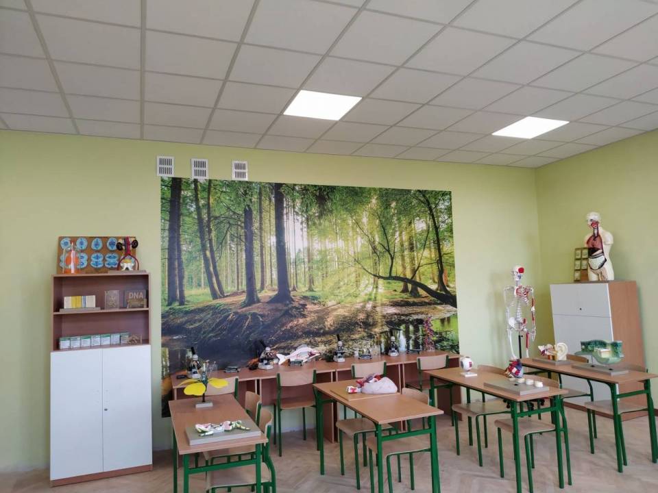Pozyskane na ten cel przez samorząd Powiatu Piotrkowskiego dofinansowanie z Wojewódzkiego Funduszu Ochrony Środowiska i Gospodarki Wodnej w Łodzi w wysokości 40 tysięcy złotych pomogło w całkowitej metamorfozie sali klasowej.