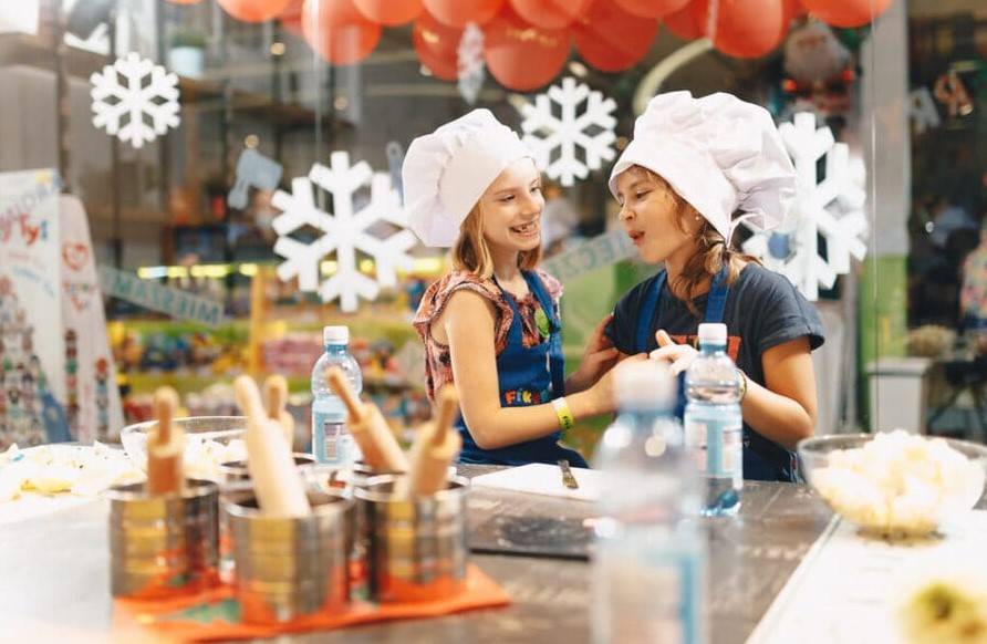 • Sale tematyczne, których zazdroszczę dzieciom: mają tam profesjonalną kuchnię (robienie pizzy czy lodów tajskich to u nich standard), laboratorium do eksperymentów chemicznych oraz salę taneczną z efektami disco. Warsztaty tematyczne w tym stylu można zorganizować dzieciom również podczas urodzin organizowanych w fikołkowej sali zabaw.