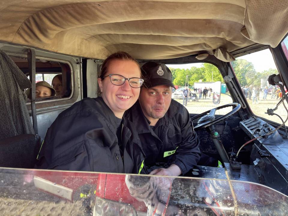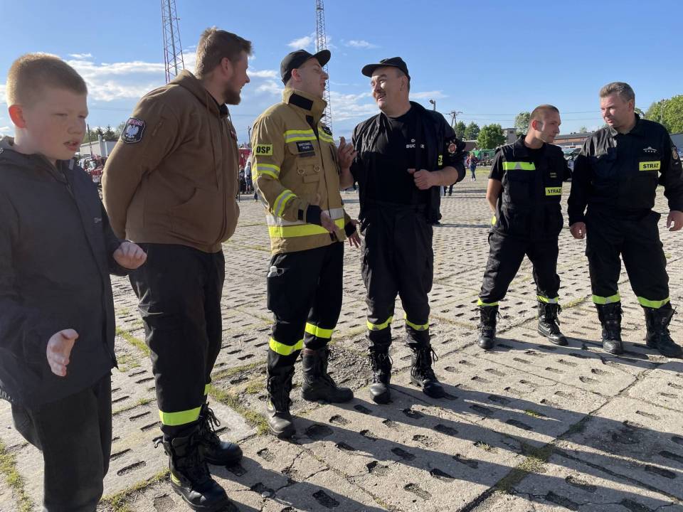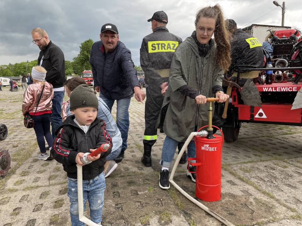 Rzadko można spotkać tyle wozów strażackich w jednym miejscu, niecodziennie też można dokładnie obejrzeć ich wyposażenie, a nawet usiąść za ich kierownicą. W sobotę każdy miłośnik wielkich maszyn mógł poczuć się jak w raju. Strażacy - ochotnicy chętnie chwalili się swoimi pojazdami, opowiadając, prezentując i pozwalając na wspólne fotografie. Można było spróbować swoich sił pompując ręcznie wodę do węży w starych strażackich pompach czy narobić hałasu kręcąc ręczną syreną.... Chłopcy chętnie też łapali za strażackie kaski.