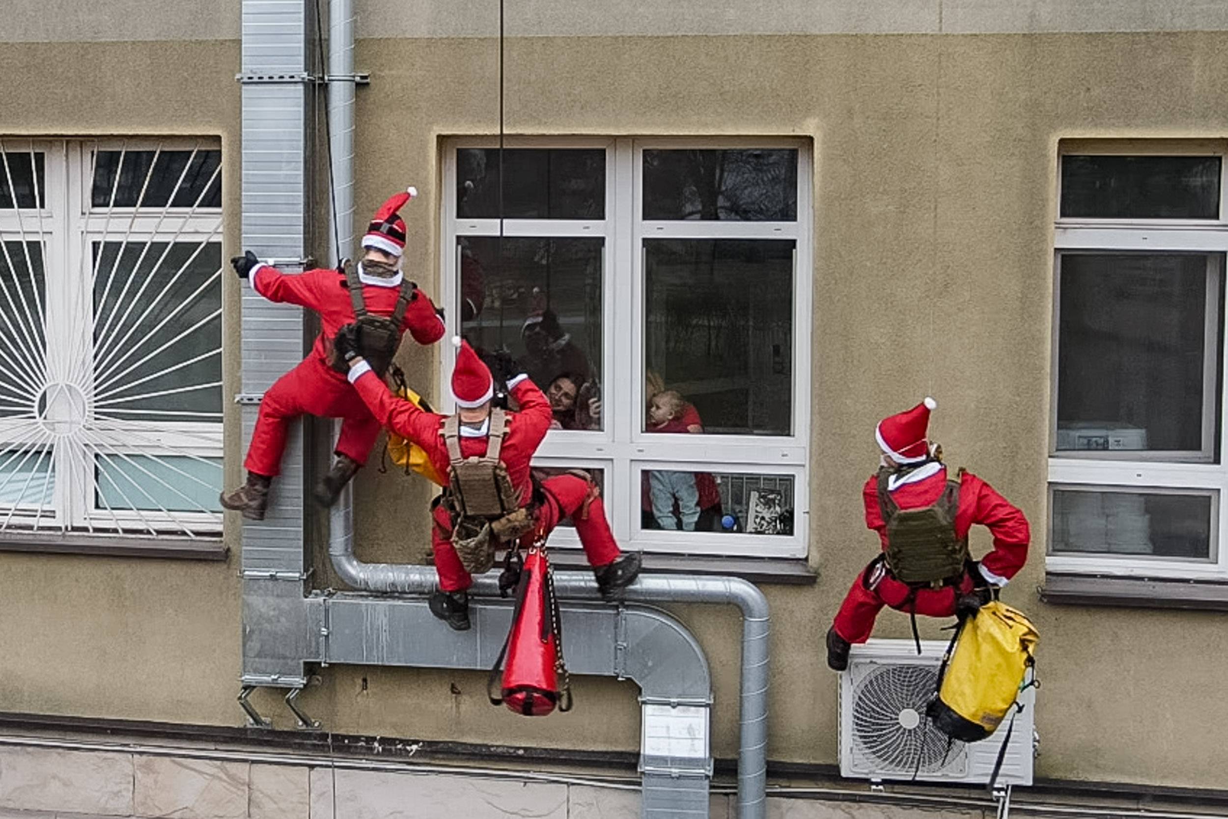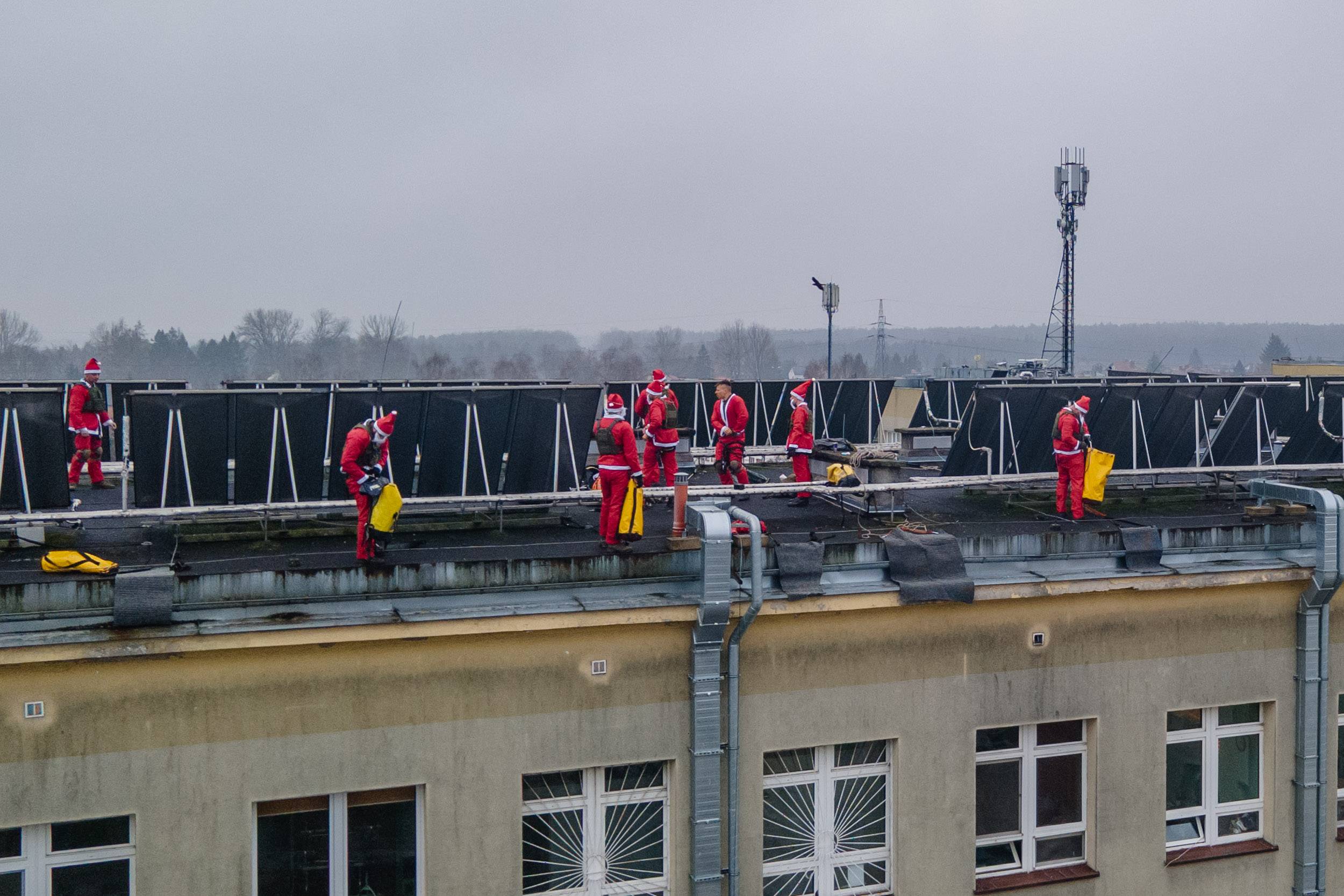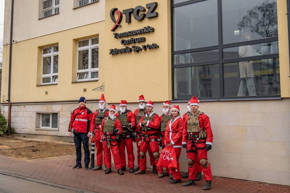 Osiem czerwonych postaci z brodami, dzwoneczkami i workami pełnymi prezentów zjeżdżało po linach z dachu Powiatowego Centrum Zdrowia w Tomaszowie Mazowieckim, wywołując na twarzach dzieci zachwyt, niedowierzanie i szerokie uśmiechy. Ten niezwykły widok 6 grudnia już po raz drugi stał się częścią mikołajkowej tradycji organizowanej wspólnie przez żołnierzy 25. Brygady Kawalerii Powietrznej oraz Wodne Ochotnicze Pogotowie Ratunkowe w Tomaszowie.