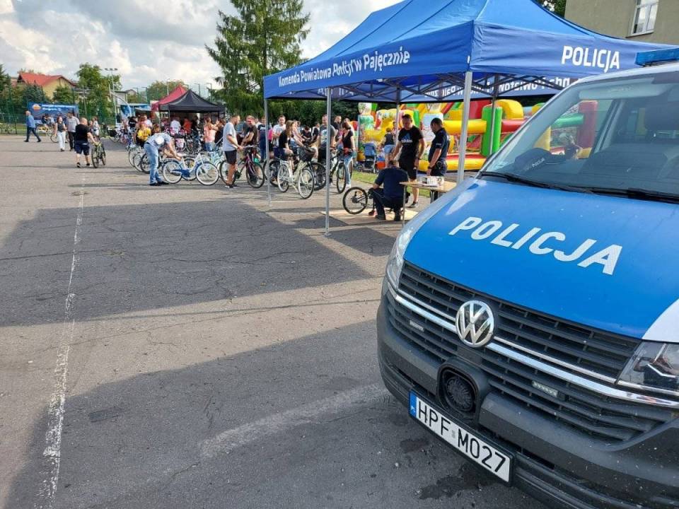Pajęczańscy policjanci wzięli udział w „pikniku rowerowym" zorganizowanym we współpracy z pajęczańskim Domem Kultury. Tym razem mieszkańcy powiatu mogli spróbować swoich sił na rowerowym torze przeszkód i oznakować swoje rowery tak, aby nie dać szansy żadnemu złodziejowi.