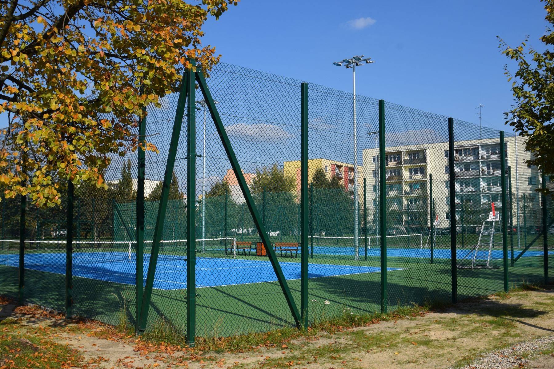 Nowe korty mają nawierzchnię akrylową w kolorach niebieskim i zielonym, są otoczone piłkochwytami, oświetlone oraz monitorowane. Wyposażono je także w elementy tzw. małej architektury – ławki, kosze, stojaki na rowery i stołki sędziowskie.