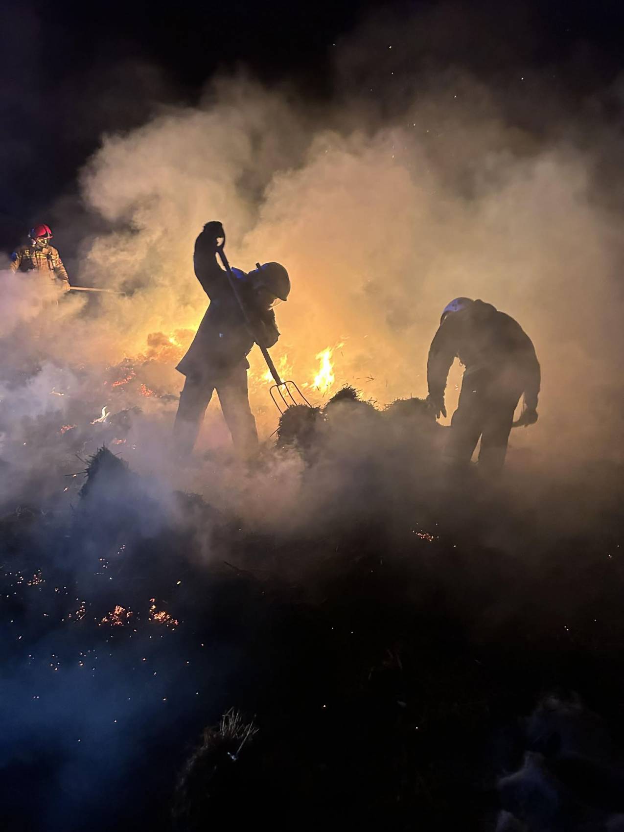 Strażacy, aby skutecznie opanować pożar i zapobiec jego ponownemu rozprzestrzenieniu, rozciągnęli bele słomy, umożliwiając ich kontrolowane wypalenie. Następnie pogorzelisko zostało dokładnie sprawdzone oraz przelane wodą.
