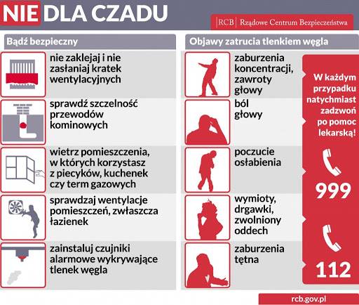 Każdego roku z powodu zatrucia tlenkiem węgla, potocznie zwanego czadem, ginie w kraju co najmniej kilkadziesiąt osób. Bardzo często nie ma to związku z powstaniem pożaru, a wynika jedynie z niewłaściwej eksploatacji budynku i znajdujących się w nich urządzeń oraz instalacji grzewczych.