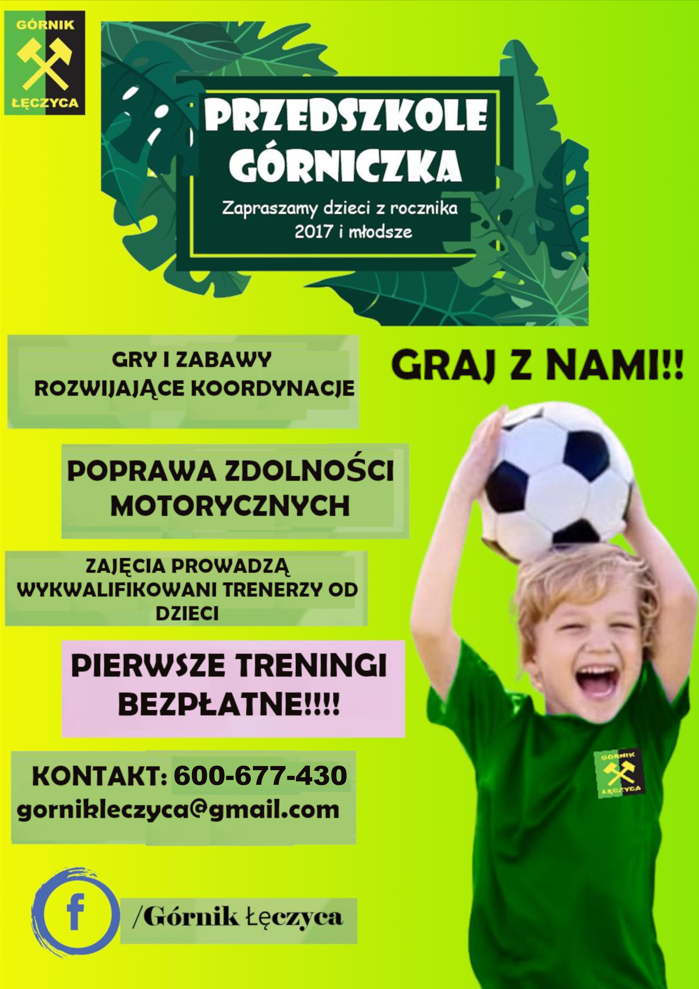 Górnik 1956 Łęczyca zaprasza dzieci do wspólnej zabawy w ramach "Przedszkola Górniczka". Klub rozpoczął nabór dla dzieci z rocznika 2017 i młodszych.