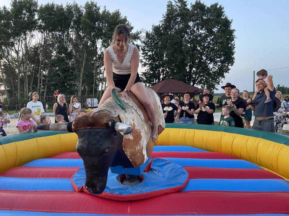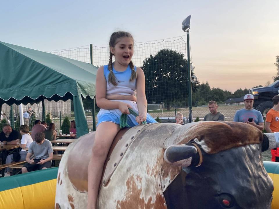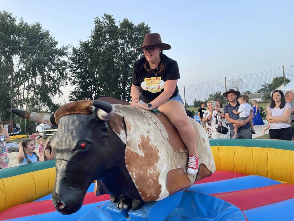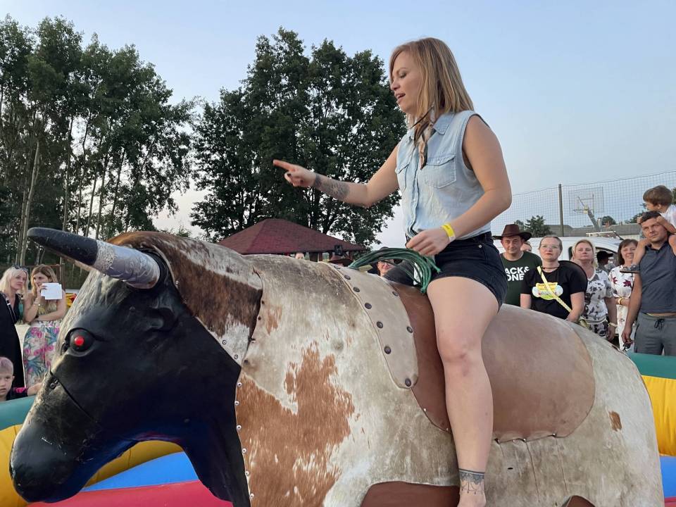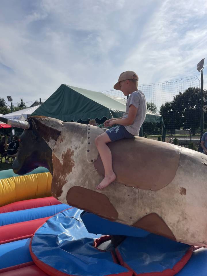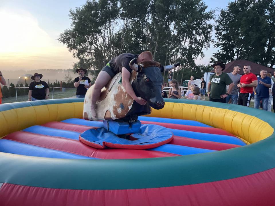 Ratownicy, strażacy i... bykDla spragnionych emocji nie zabrakło również atrakcji z przymrużeniem oka – konkurs jazdy na byku, rzut snopkiem, a także niecodzienna okazja do przejażdżki monster truckiem, która wzbudzała szczególne emocje wśród najmłodszych.