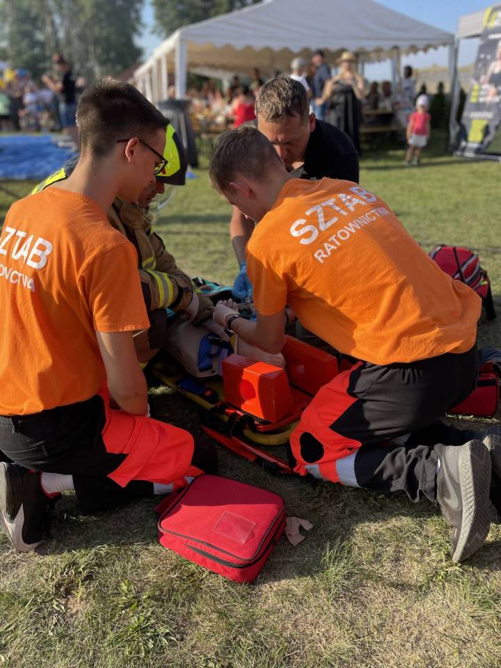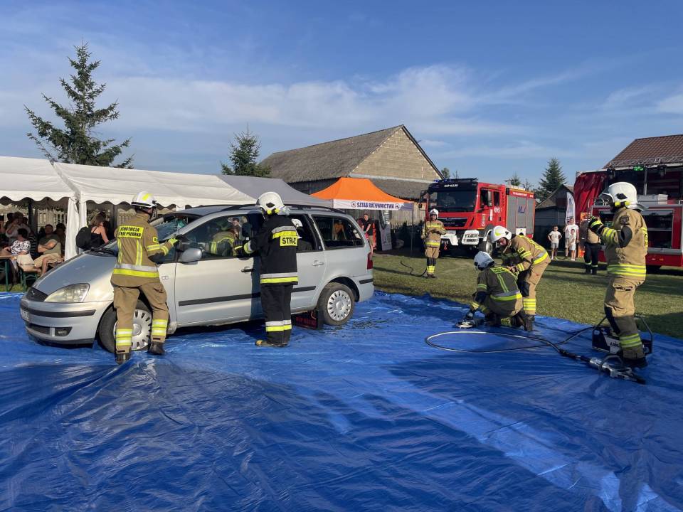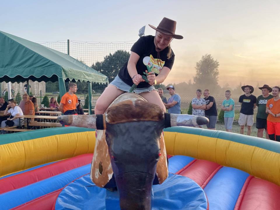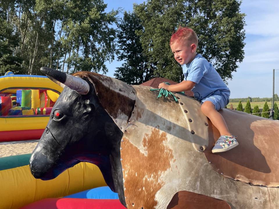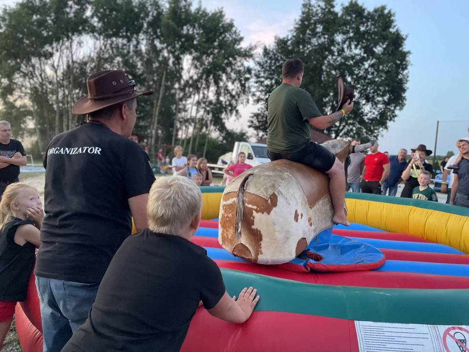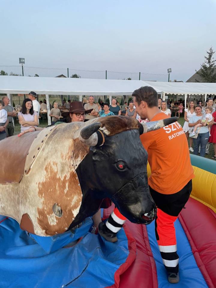 Ratownicy, strażacy i... bykDla spragnionych emocji nie zabrakło również atrakcji z przymrużeniem oka – konkurs jazdy na byku, rzut snopkiem, a także niecodzienna okazja do przejażdżki monster truckiem, która wzbudzała szczególne emocje wśród najmłodszych.