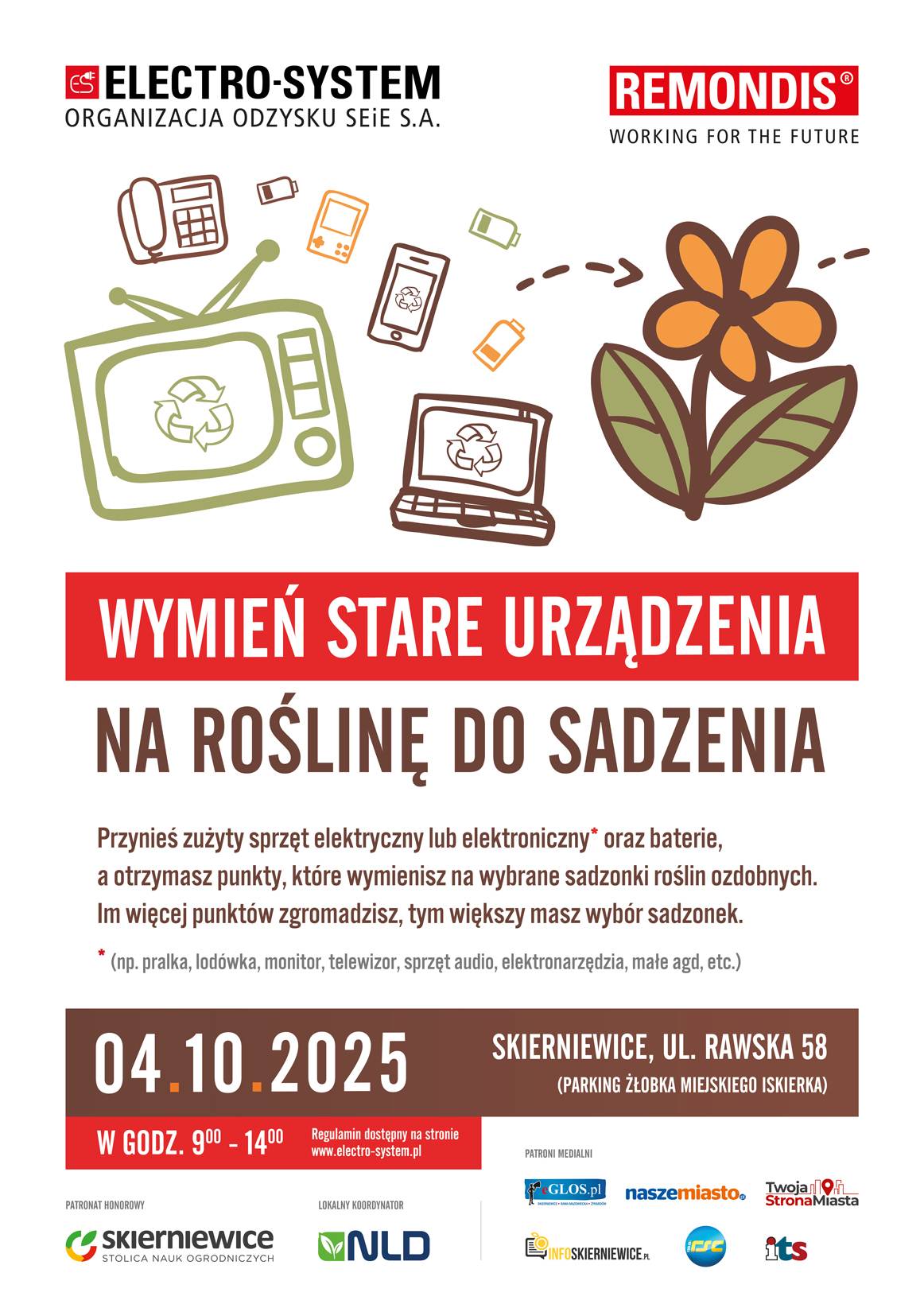 W sobotę 4 października w godz. 9–14 odbędzie się kolejna odsłona popularnej akcji „Wymień stare urządzenia na roślinę do sadzenia". Zbiórka przeprowadzona zostanie tradycyjnie przy ulicy Rawskiej 58, na parkingu miejskiego żłobka „Iskierka".
