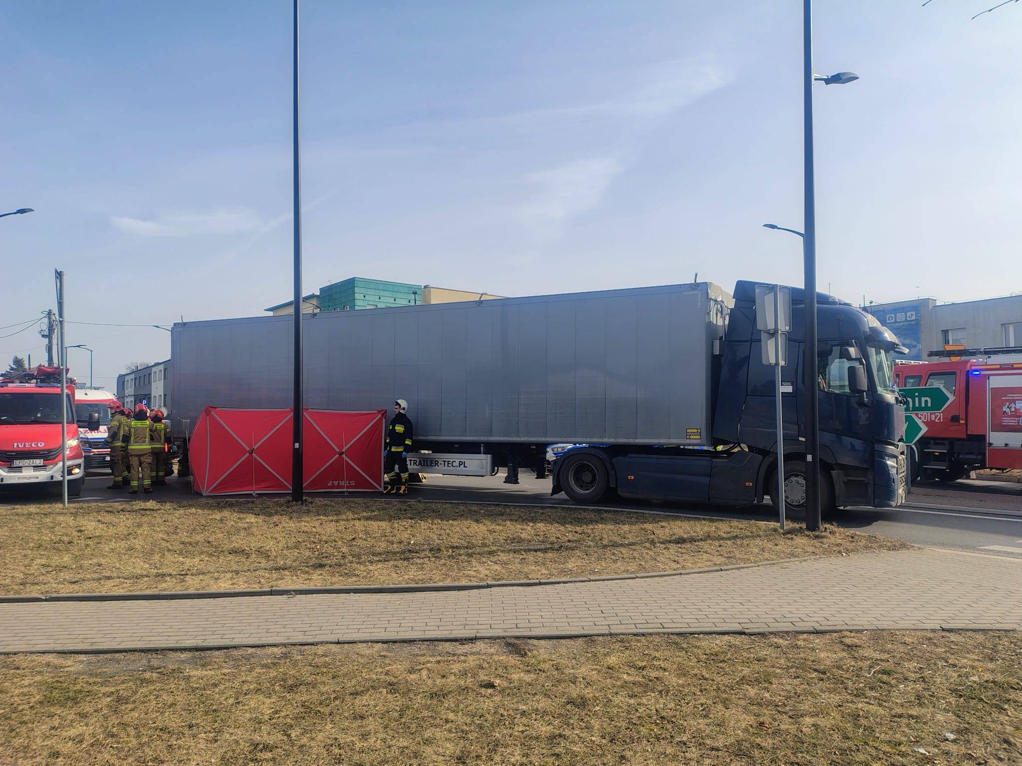 - Strażacy zabezpieczali miejsce zdarzenia, wydobyli ciało osoby spod naczepy , wraz z funkcjonariuszami kierowali ruchem drogowym w obrębie wypadku oraz usunęli skutki zdarzenia . Na miejsce zdarzenia przybył i kierował działaniami ratowniczymi Z-ca Komendanta Powiatowego PSP w Poddębicach st.kpt.Dudczak Radosław - przekazuje bryg. Radosław Ogrodowczyk, oficer prasowy KP PSP Poddębice.