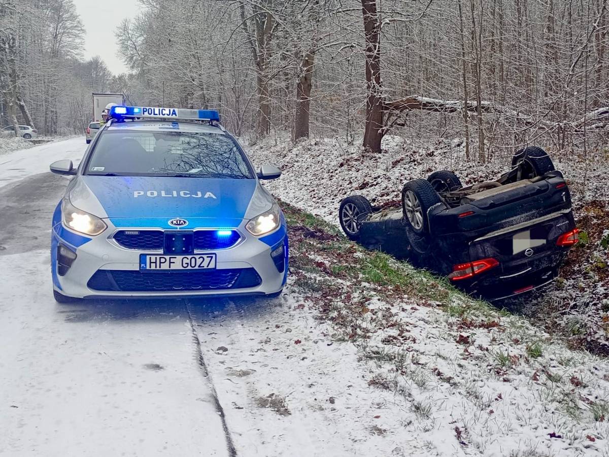 Kolejne zgłoszenie wpłynęło około godziny 13.00 z miejscowości Chorzeszów. 24-letnia kierująca nissanem qashqai, mieszkanka Łodzi, nie dostosowała prędkości do ośnieżonej i śliskiej nawierzchni. Auto wpadło w poślizg, zjechało do rowu i dachowało. Kobieta była trzeźwa, jednak z obrażeniami trafiła do szpitala.